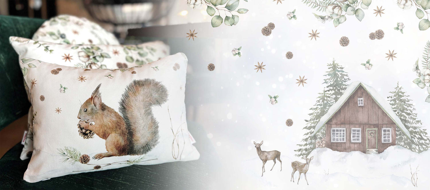 Gemütliche Kissenhüllen, Tischdecken, und Läufer für Zuhause, in dem man gerne bleibt. Weich, herzlich und voller kleiner Winterfreuden.