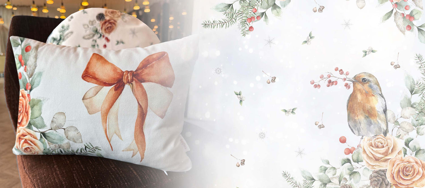 Gemütliche Kissenhüllen, Tischdecken, und Läufer für Zuhause, in dem man gerne bleibt. Weich, herzlich und voller kleiner Winterfreuden.