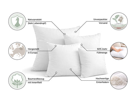 Federkissen Innenkissen Größenwahl - extra prall gefüllt 100 % Mehrfüllung – beties PublikPlus