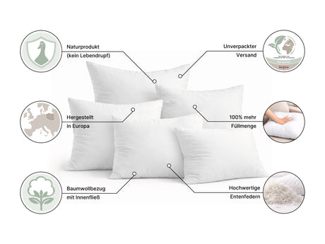Federkissen großes Kopfkissen 70x70 cm Innenkissen – Schlafkissen – beties Publik