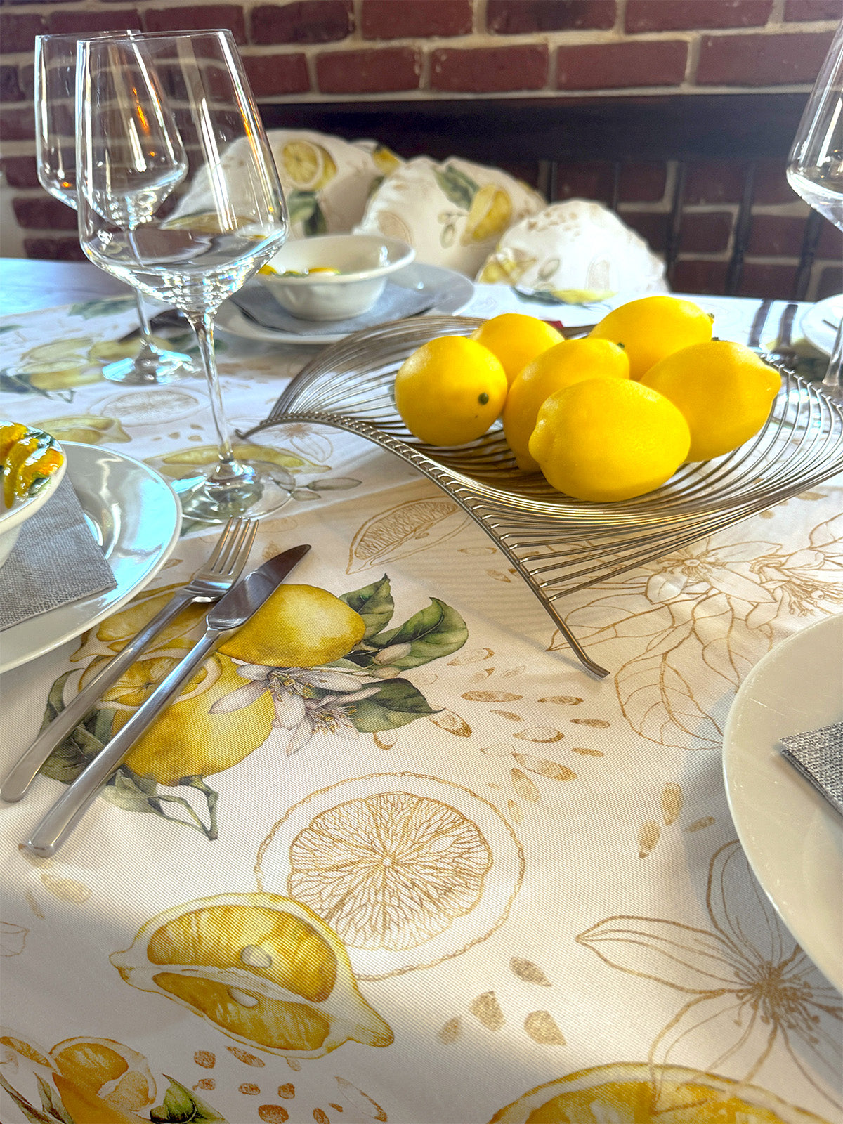 - DESIGN: Lebensechte Zitronen in Originalgröße mit zarten goldenen Akzenten – mediterranes Dekor, frische Tischdekoration, sommerliche Tischwäsche, stilvolle Esszimmerdekoration und elegante Küchentisch-Accessoires.