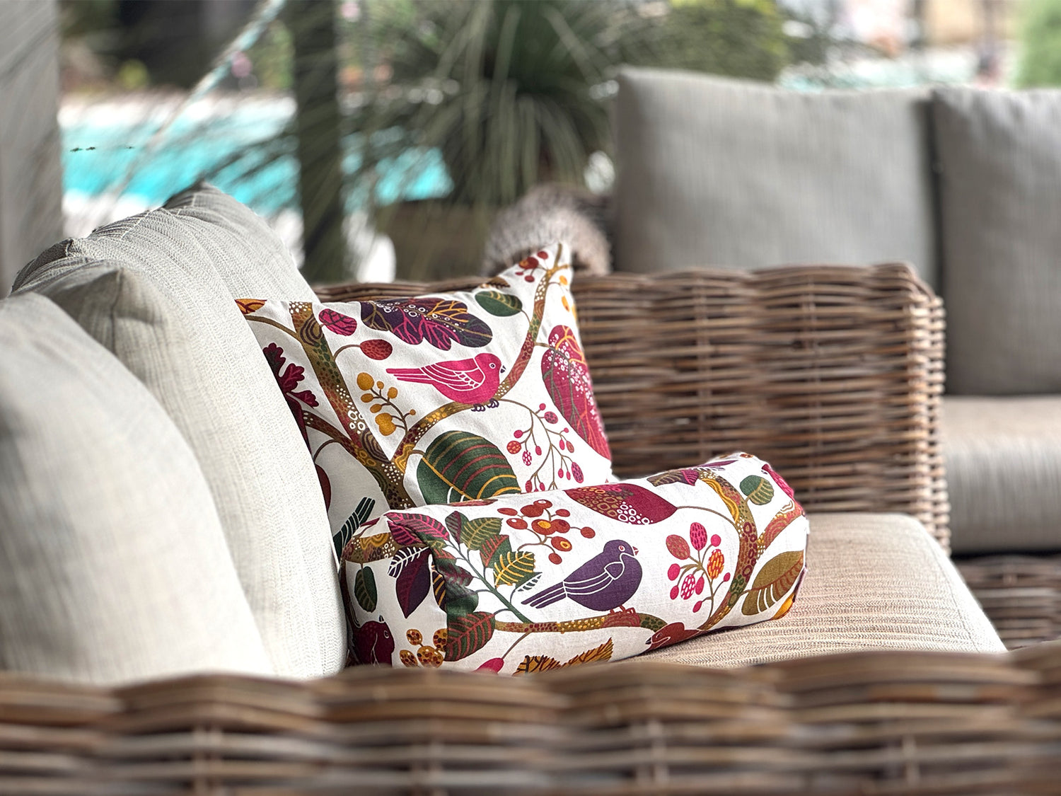 - Design : Un véritable accroche-regard grâce à l'aspect varié de l'imprimé intégral, chaque housse de coussin est un motif oiseau/feuille unique et imaginatif dans une coordination harmonieuse des couleurs.
