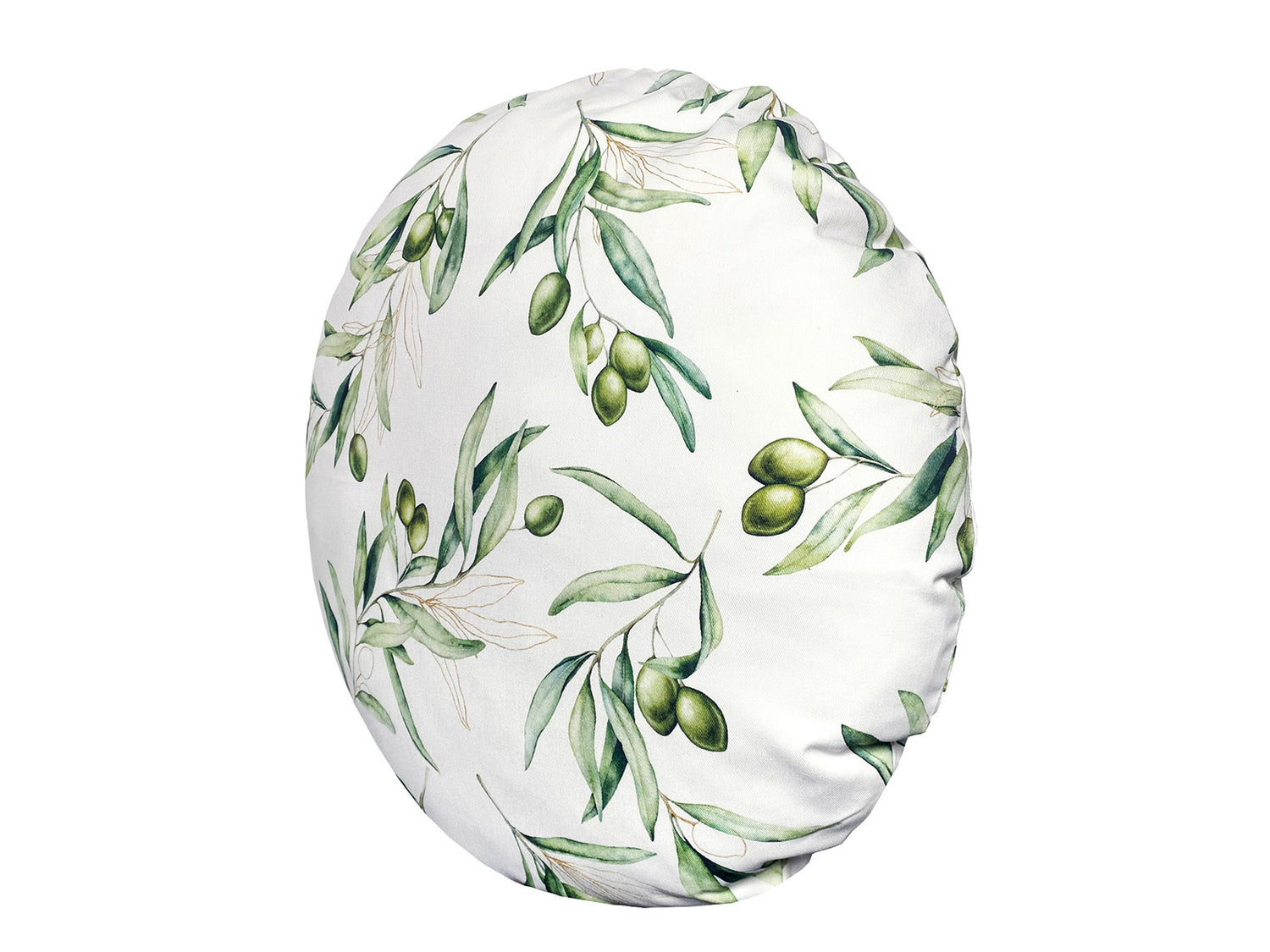 Mediterrane runde Kissenhülle ca. 60 cm Ø aus 100% Baumwolle - Oliven Design aus der beties "Italy Collection"