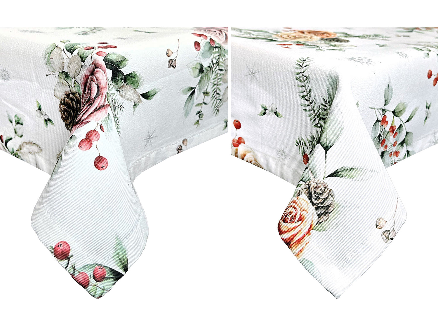 Tischdecke 110x110–130x220 cm – Winterdeko mit gefrosteten Rosen – 100% Baumwolle – beties Magie des Winters "Frost-Rose"