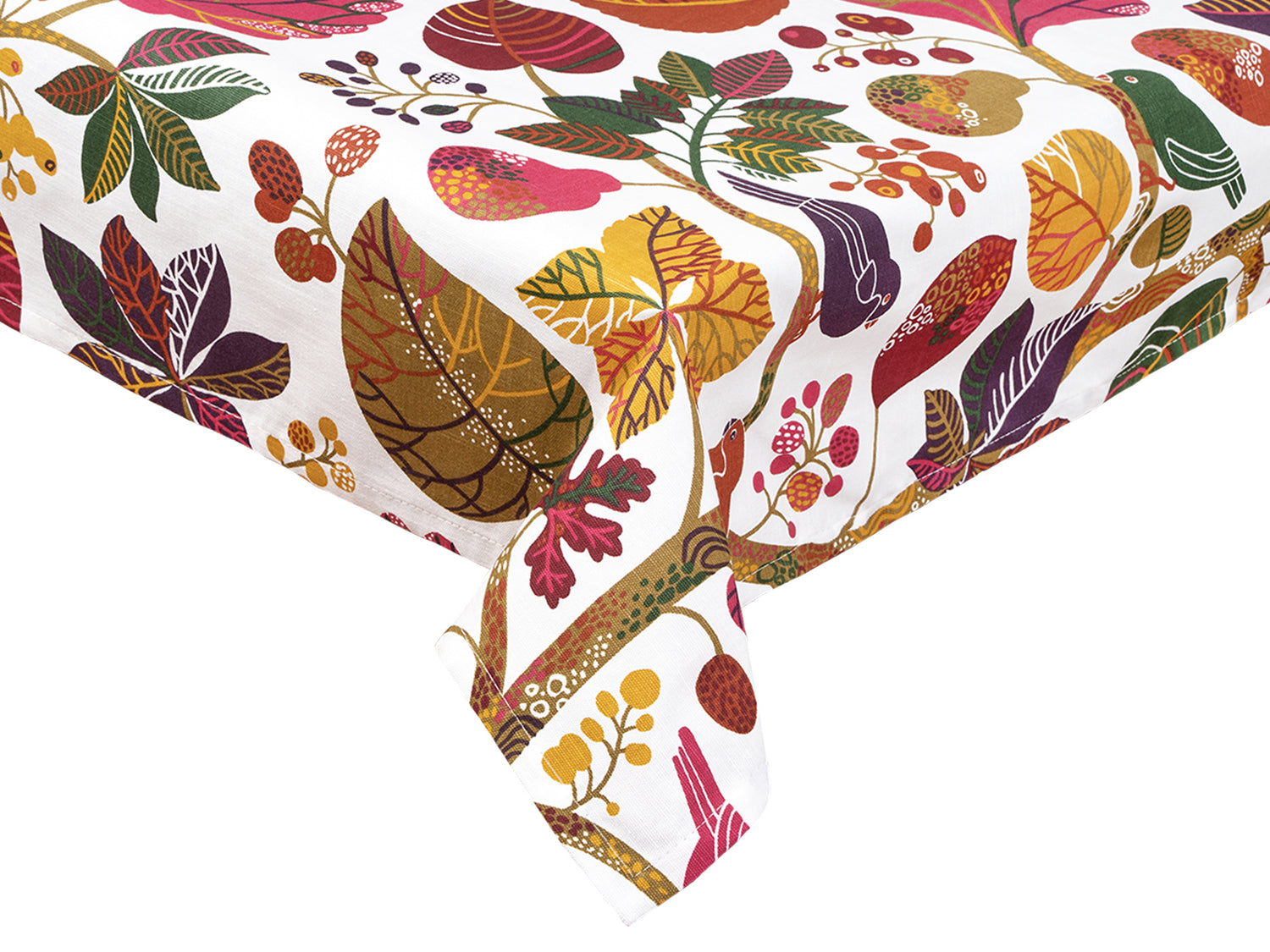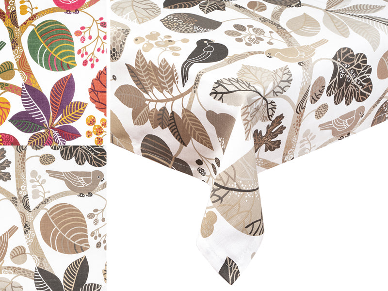 - Design : Un véritable accroche-regard grâce à l'aspect varié de l'imprimé intégral, chaque nappe est un motif oiseau/feuille unique et imaginatif dans une coordination harmonieuse des couleurs.