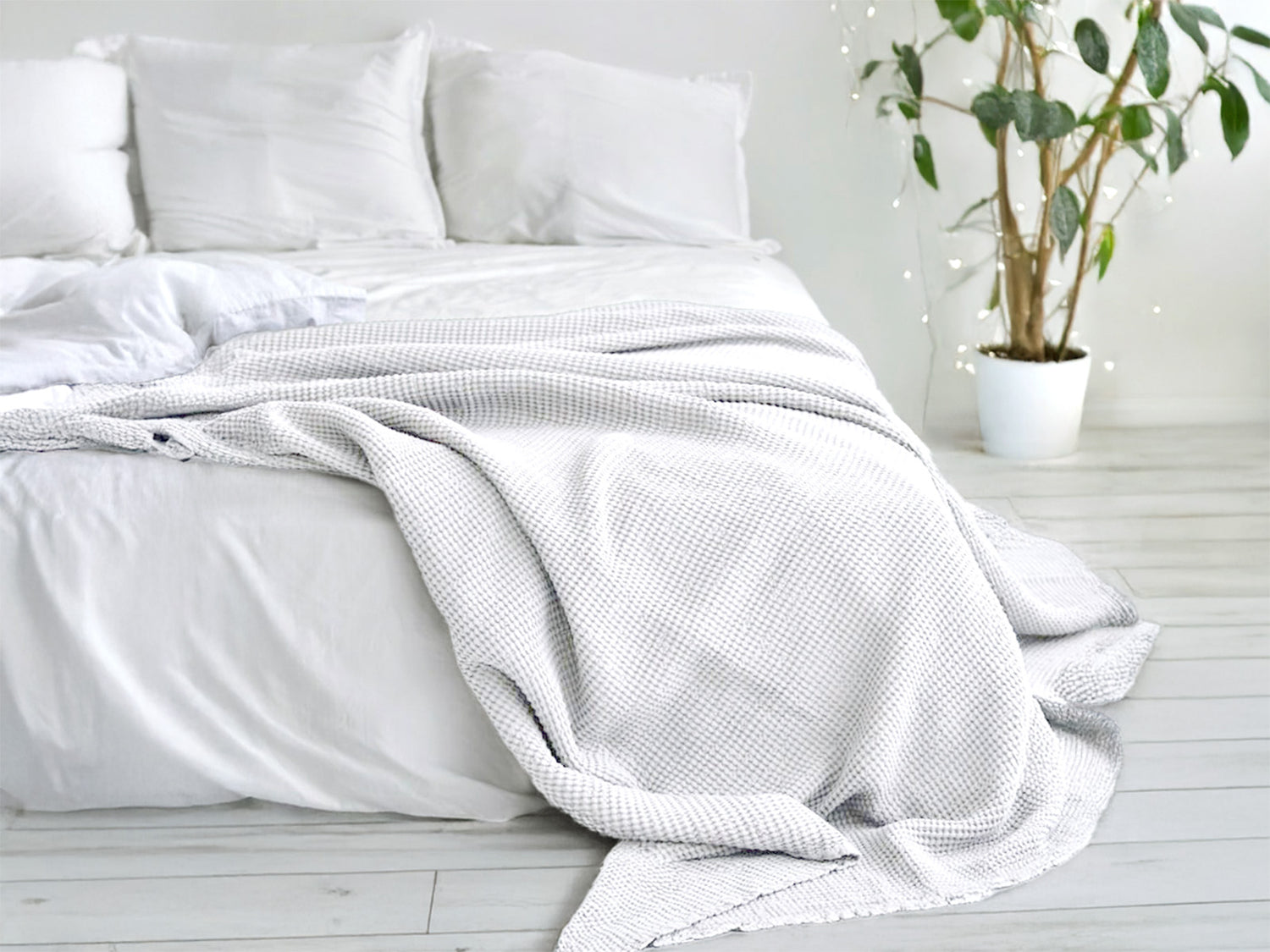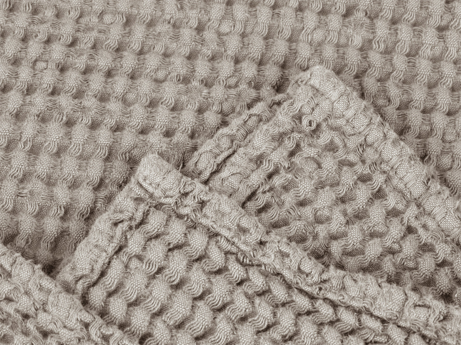Das Ergebnis ist ein leichtes, atmungsaktives Gewebe, das sich nie schwer anfühlt, aber spürbar wertig ist. Perfekt als große Spa-Decke, Wohndecke oder Tagesdecke – ob zuhause, im Hotel oder im Wellnessbereich.