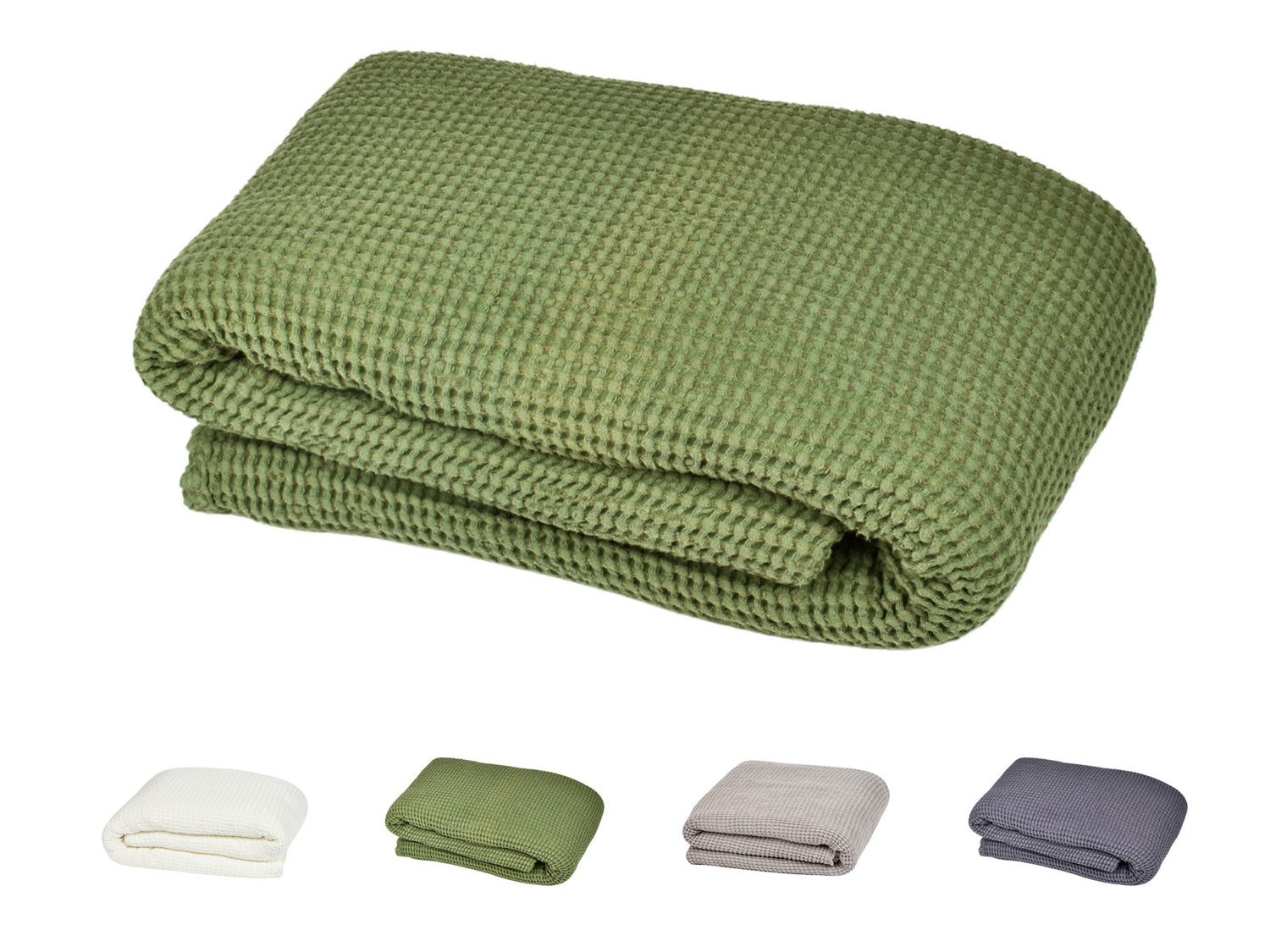 Wellness- & Wohndecke ca. 215x230 cm – große Waffelpique Tagesdecke aus Baumwoll-Leinenmix beties "PUR.NATURE"