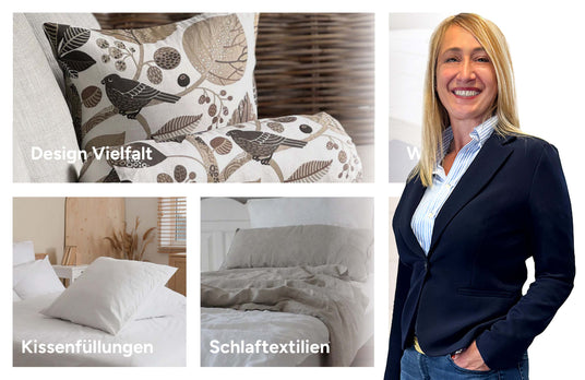 Ich bin Tina, seit drei Jahrzehnten gestalte ich mit beties Heimtextil nicht nur Kissen und Stoffe, ich erschaffe Atmosphäre und Geborgenheit. Meine Arbeit wurzelt in den Werten Weisheit, Schönheit und Stärke.