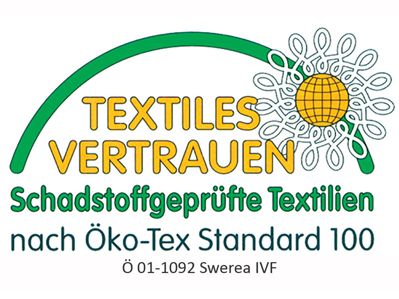 - Textiles Vertrauen Geprüft auf Schadstoffe nach Öko-Tex-Standard 100.
