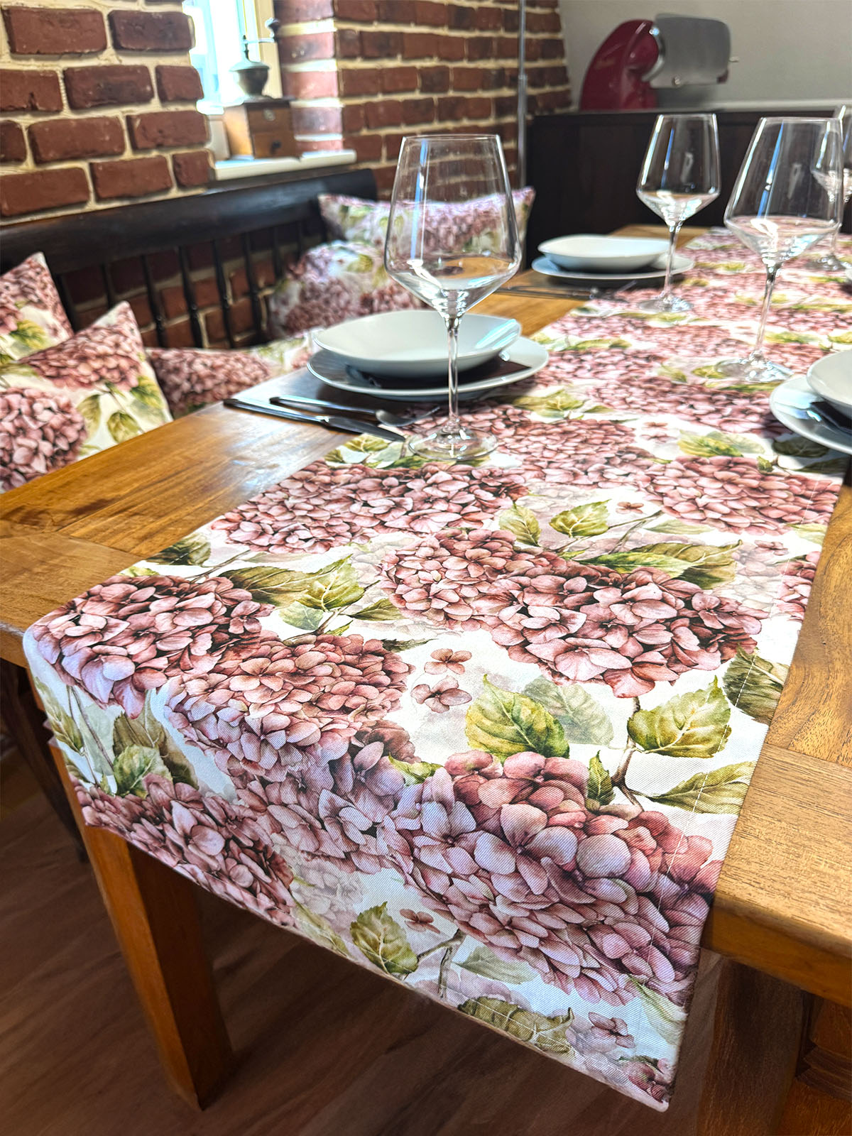 Tischläufer aus 100% Baumwolle - romantische Tischdekoration Hortensie beties "Landlust"
