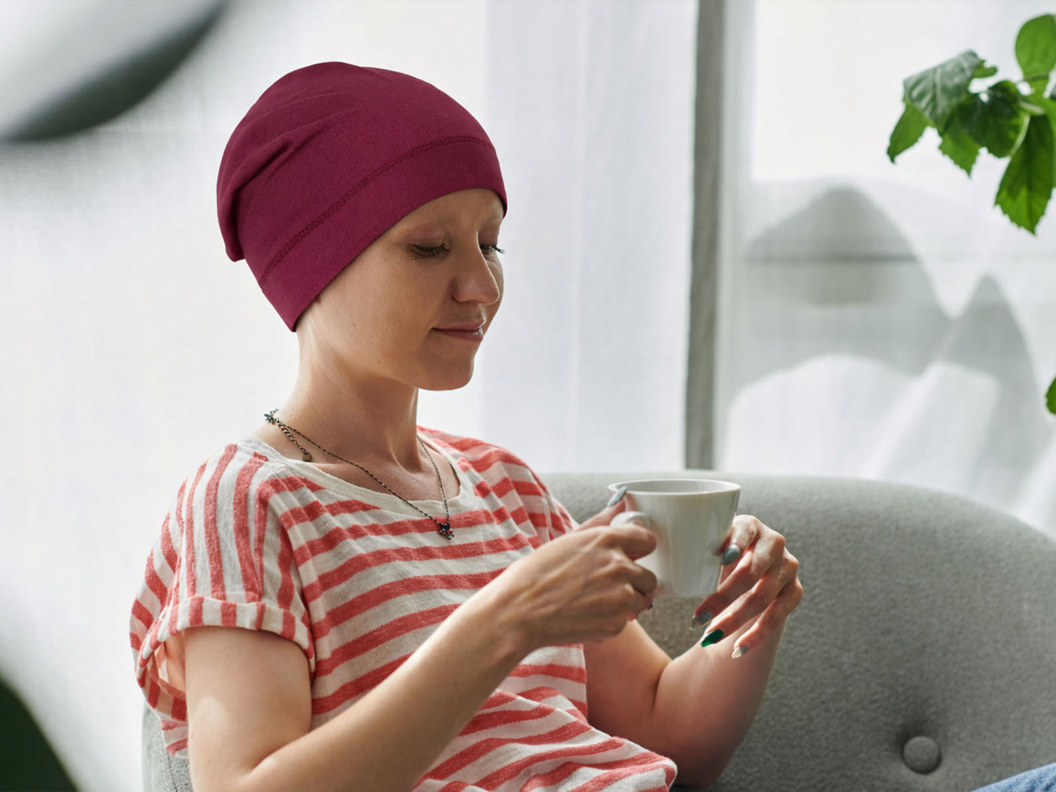 Baumwolle beginnt mit einer Blume und wächst zu einem flauschigen Knäuel heran, bevor sie schließlich zu dem weichen Stoff gesponnen wird. Alle lieben wir diese hautsympathische Naturfaser. Baumwoll-Jersey funktioniert gut mit unserer Haut, es ist eine sanfte Berührung Deines Kopfes. Das Premium Material und unser Fokus auf Komfort ist ideal für Deine empfindliche Kopfhaut, wenn z.B. durch eine Chemo, Alopecia oder anderen Gesundheits-Beeinträchtigungen eine Kopfbedeckung benötigt wird.
