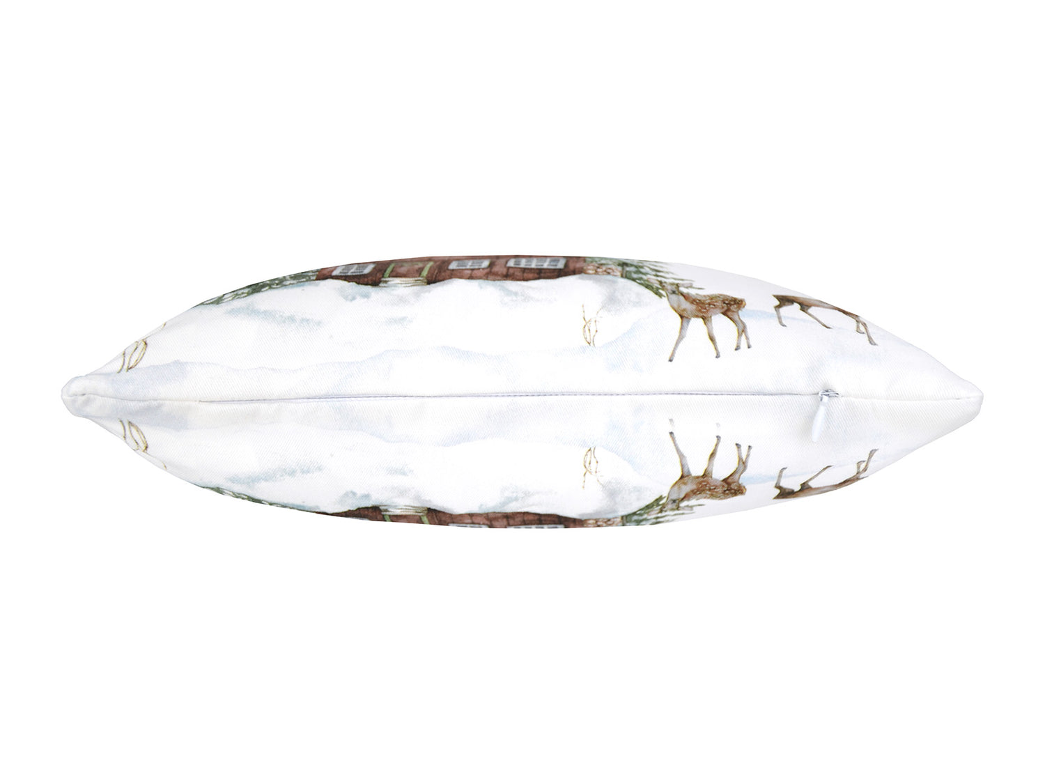 Kissenhülle ca. 25x35 cm – Winterdeko mit Hütte und Rehen– 100% Baumwolle – beties Magie des Winters "Moggl-Hütte"