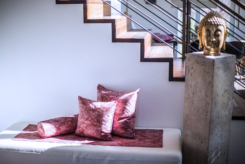 Ob im Wohnzimmer oder Schlafzimmer: Die klaren Linien und das zeitlose Ornament-Design lassen sich wunderbar mit Holz, Grau, Weiß oder Schwarz kombinieren. Mit passenden Accessoires wie Kakteen, Palmen, Buddha-Figuren, Klangschalen oder orientalischen Lampen setzt du stilvolle Akzente und verwandelst dein Zuhause in einen Ort voller Gelassenheit.
