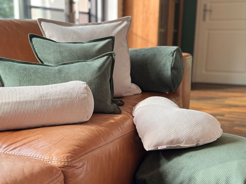 Unsere Cozy Cord weichen Bezüge, gefüllte Herzkissen und DIY-Zuschnitte sind die perfekte Ergänzung für Dein Sofa, Dein Sessel oder im Bett. Hergestellt aus hochwertigem Cordsamt fühlt sich das Material besonders weich und angenehm an.