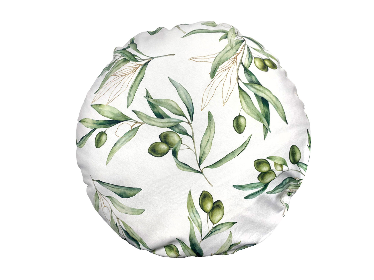 Mediterrane runde Kissenhülle ca. 50 cm Ø aus 100% Baumwolle - Oliven Design aus der beties "Italy Collection"