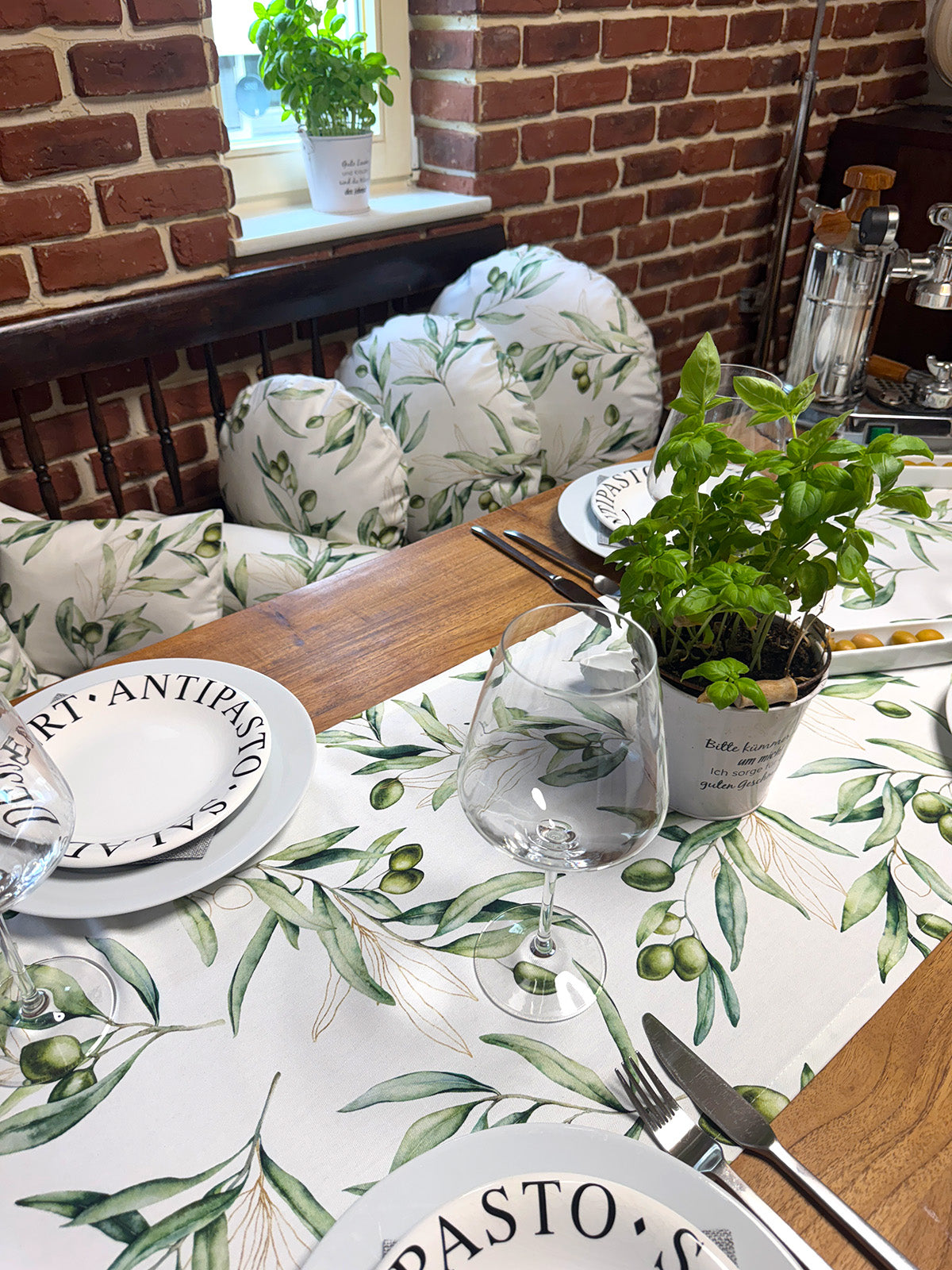 Entdecke die mediterrane Eleganz mit der beties Italy Collection „Oliven“. Hochwertige Wohntextilien mit frischen grünen Oliven und goldenen Details bringen natürlichen Charme in Dein Zuhause. Das stilvolle Design vereint warme Weißtöne, natürliche Motive und glänzende Akzente – wie ein kleiner Urlaub, der immer bleibt. Perfekt für verschiedene Wohnräume, schafft diese Serie eine warme, einladende Atmosphäre.